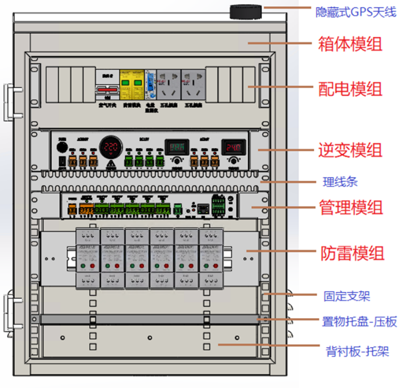 HD-XW系列模块化智能监控箱分为箱体模组、配电模组、电源模组、管理模组、防雷模组,并具备托盘、理线架等配件。箱体内置支架,模组采用横置,将富余空间预留至下部。具备模块化、便于维修替换、升级等优点。